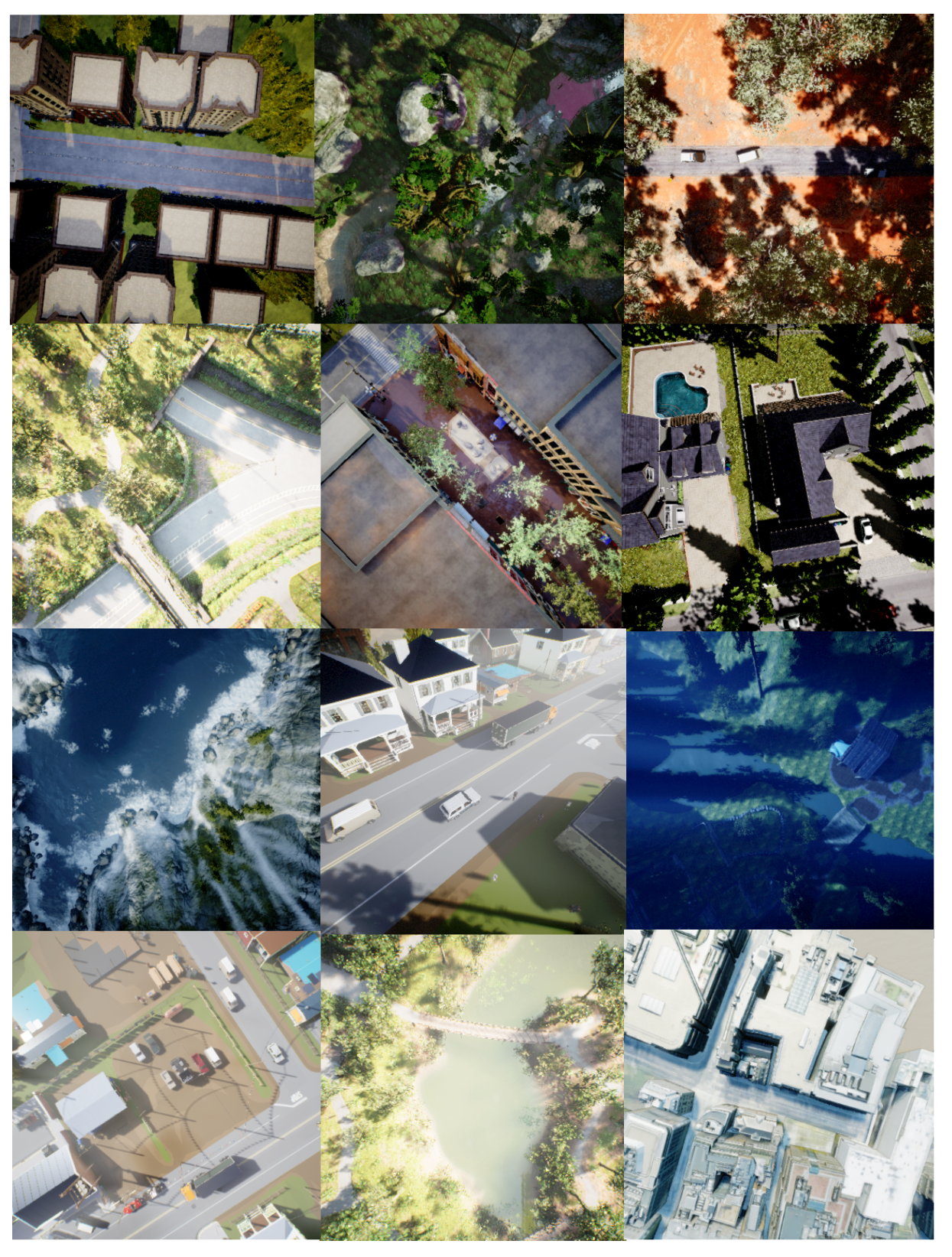 The dataset was collected using different environments in UnrealEngine4 integrated with AirSim simulator. These environments are: